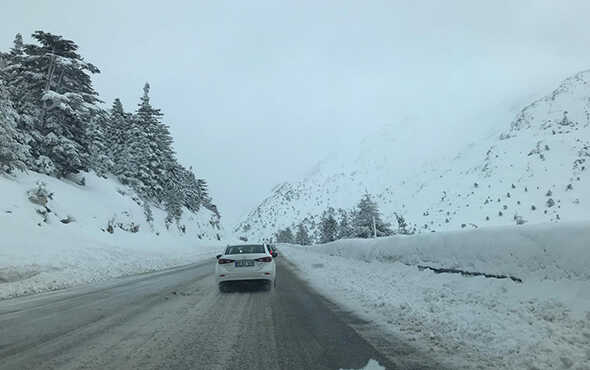 Yaklaşık bir saat ulaşıma kapanan yol kar yağışının durması ve karayolları ekiplerinin çalışmasının ardından trafiğe açıldı.