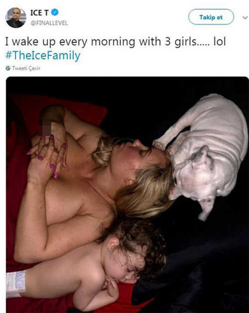 ”HER SABAH BU ÜÇ KIZLA UYANIYORUM”: Twitter’dan, 39 yaşındaki Coco, kızları Chanel ve köpeklerinin birlikte uyurken çekilmiş bir fotoğrafını paylaşan Ice T, “Her sabah bu üç kızla uyanıyorum” notunu düştü.