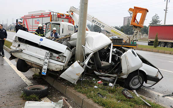 KAHRAMANMARAŞ’ta meydana gelen trafik kazasında aydınlatma direğine çarpan otomobil paramparça oldu. Kazada sürücü hayatın kaybederken 1 kişi de yaralandı.