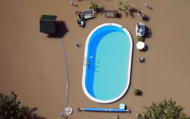 Sel suları ile çevrili bir havuz.