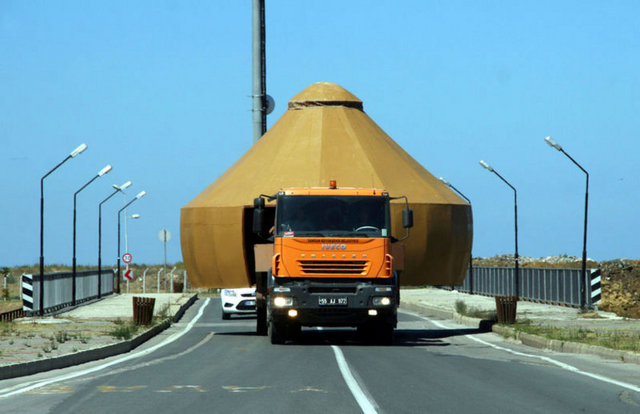 TIR’la taşınan amazon çadırları karayolunda ilginç görüntü oluşturdu
